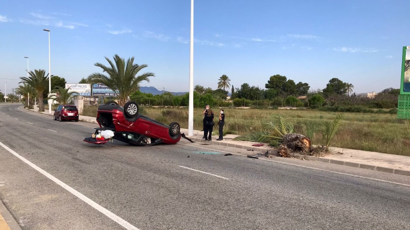 La Policía Local de Elche ha asistido en torno a las 08:30 horas de esta mañana un accidente de circulación en la ronda que da paso a la EL-20 y la Vía Parque Elche-Alicante en el que se ha visto implicado un vehículo que, por causas que analizará ahora el área de Atestados, ha quedado volcado en la calzada.