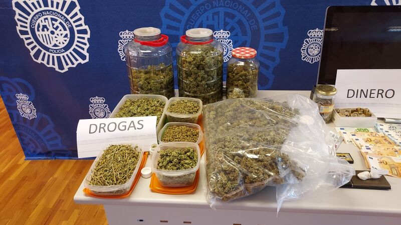 Después de obtener autorización judicial para la entrada y registro del domicilio, se procedió a ello deteniendo al hombre e interviniéndose cinco gramos de cocaína dispuesta para su venta y sustancia de corte, tres kilos de marihuana, dos básculas de precisión, tres pistolas simuladas, dos defensas, varios teléfonos móviles, 2200 euros supuestamente pertenecientes de la venta de la drogas y útiles para la manipulación de la sustancia estupefaciente.