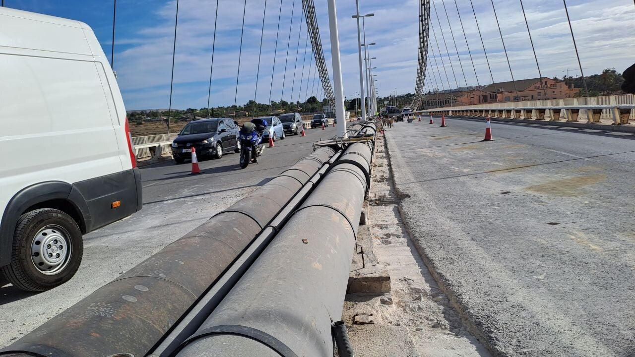 Los trabajos para la sustitución de las biondas en el Puente del Bimilenario son los que mantienen cerrados al tráfico de vehículos un carril en cada sentido de circulación.