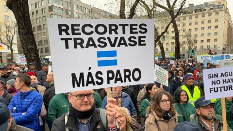 Los regantes del Tajo-Segura de la provincia de Alicante, la región de Murcia y Almería han realizado este miércoles una masiva concentración frente al Ministerio para la Transición Ecológica contra los recortes en el trasvase que, a modo de incremento del caudal ecológico en el Tajo, contempla el plan de cuenca de ese río que pretende aprobar el Gobierno central.