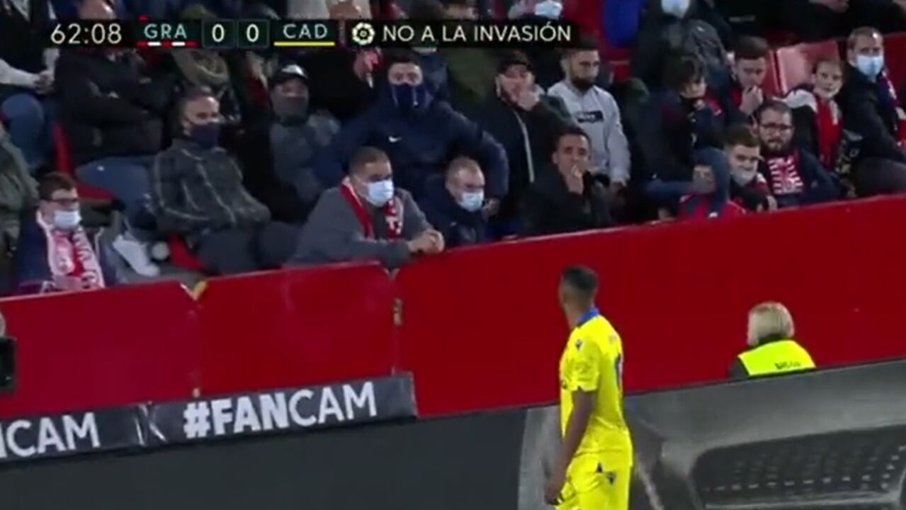 El futbolista ilicitanoCarlos Akapo, que el próximo 12 de marzo cumplirá 29 años, sufrió gritos racistas en el estadio Los Cármenes cuando fue sustituido en el partido ante el Granada. El jugador del Cádiz se detuvo ante esos tres seguidores, con calma y educación, para pedirles explicaciones. Lejos de echarse hacia atrás, uno de ellos continuó con su ataque y simuló los gestos de un mono para burlarse del lateral.