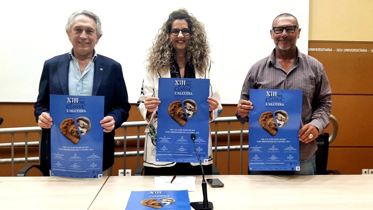 La Universidad de Alicante ha presentado la programación de la nueva edición del Festival de Teatro Clásico de L’Alcúdia. Una actividad que aúna el teatro clásico con el entorno arqueológico del Yacimiento de L'Alcúdia de Elche y que este año alcanza su decimotercera edición. El festival se llevará a cabo del 9 al 18 de julio e incluye un programa con seis representaciones teatrales y un ciclo de cinco visitas temáticaspara dar a conocer los restos arqueológicos más relevantes de la colección museográfica y las últimas novedades de la investigación de la UA en el yacimiento. La vicerrectora de Cultura, Deporte y Extensión Universitaria, Catalina Iliescu, el vicerrector de Investigación, Juan Mora, y el director de la Fundación Universitaria de Investigación Arqueológica, Alejandro Ramos, han dado a conocer el contenido de la nueva edición del Festival.