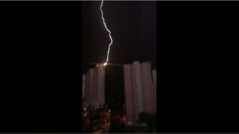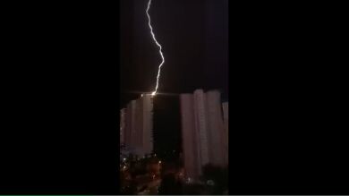 Los bomberos del Consorcio Provincial de Alicante han intervenido en la pasada madrugada del domingo al lunes en Benidorm para sofocar un incencio originado en los contadores de gas de un edificio de 30 plantas de esta localidad de la Marina Baixa. Según fuentes del Consorcio Provincial de bomberos, las llamas se originaron a las 00:12 horas de la noche del domingo al lunes en el número 10 de la Avenida Armada Española de Benidorm. La tormenta eléctrica que se ha vivido durante esta pasada madrugada provocó que numerosos vecinos estuvieran captando con sus móviles los rayos que dejaba el cielo, sobre el agua del mar Mediterráneo, y uno de ellos captó el vídeo en el que se puede comprobar cómo un rayo impactó en el edificio, provocando el fuego, un fuerte estruendo y la alarma entre los residentes. Hasta el inmueble se desplazaron una bomba urbana pesada, una autoescalera, un sargento, un cabo y seis bomberos del Parque de Benidorm, además de una unidad de mando de jefatura. Por suerte, no hubo heridos y la intervención finalizó a las 02:03 horas. Desde el Consorcio Provincial de Alicante señalan que el fuego, efectivamente, pudo originarse por la acción de este rayo.