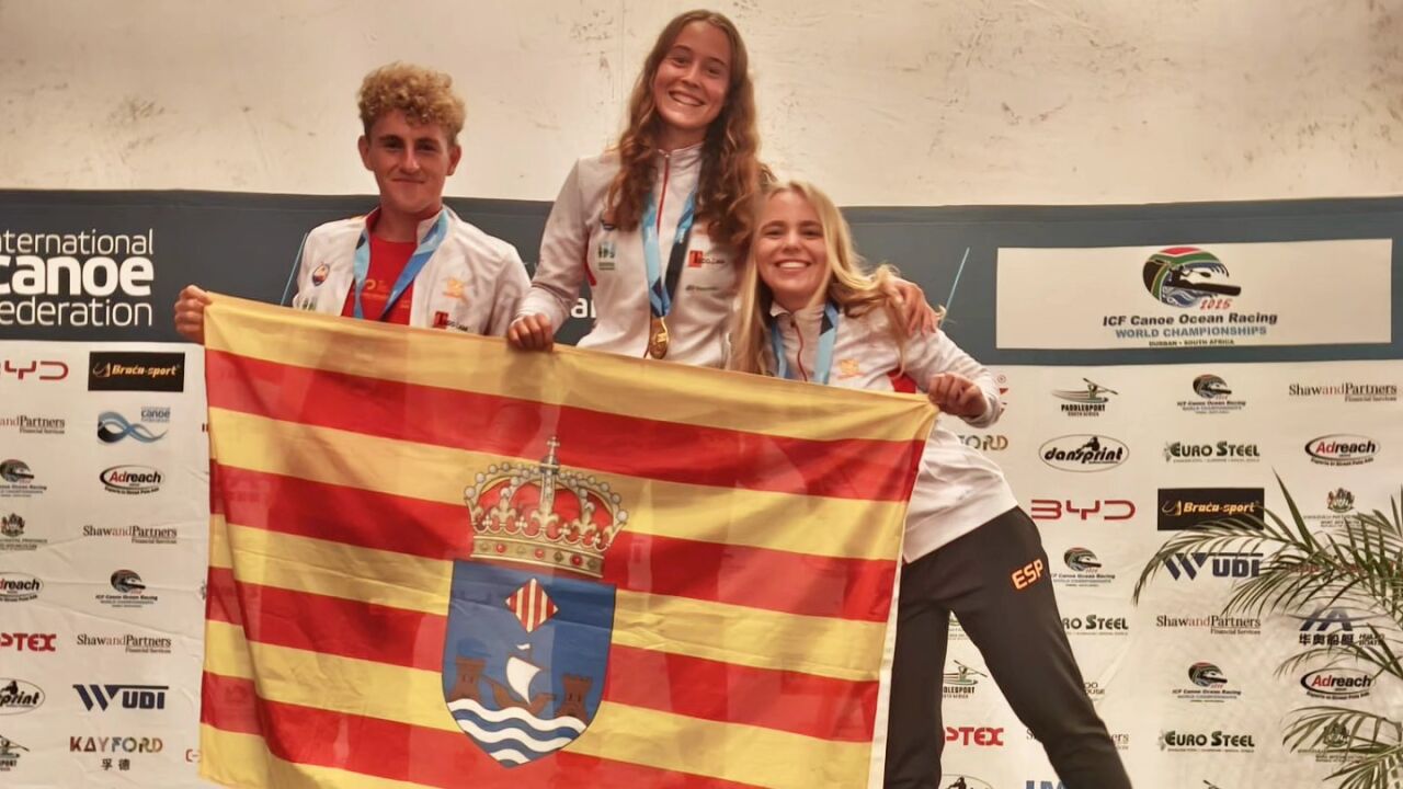 Andrea Jiménez, campeona del Mundo de Kayak de Mar en SS1, Pau Sánchez, subcampeón del Mundo de Kayak de Mar en junior SS2, Sara Mengual, subcampeona en Sub 23 SS2 y Chloe Bunnett plata en mixto veteranos