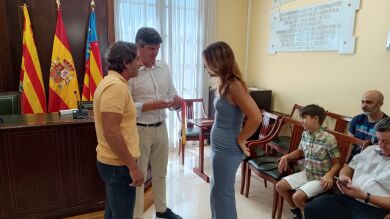 El Alcalde Marcos Zaragoza y el concejal de Deportes, Peyo Lloret, han recibido esta mañana en el Ayuntamiento de Villajoyosa a la arquera vilera Natalia Sánchez.