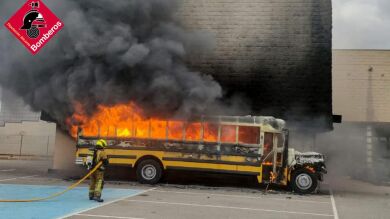 A su llegada, los Bomberos pudieron comprobar que el fuego estaba afectando a la totalidad del autobús recreativo y rápidamente iniciaron las labores de extinción del incendio. El autobús quedaba completamente calcinado y el siniestro ha causado daños materiales en la fachada principal de la Fundación Cultural Frax.