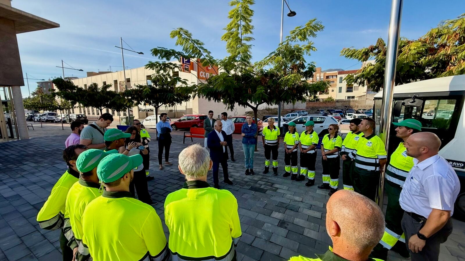Esta mañana se ha presentado la plantilla de la empresa, compuesta por 15 personas, además de algunos de los vehículos, maquinaria y herramientas que se van a utilizar para mejorar el servicio de limpieza viaria en la localidad. Las plantillas de las dos anteriores adjudicatarias del servicio han sido subrogadas en su totalidad por la nueva empresa, con lo cual no se destruyen puestos de empleo.