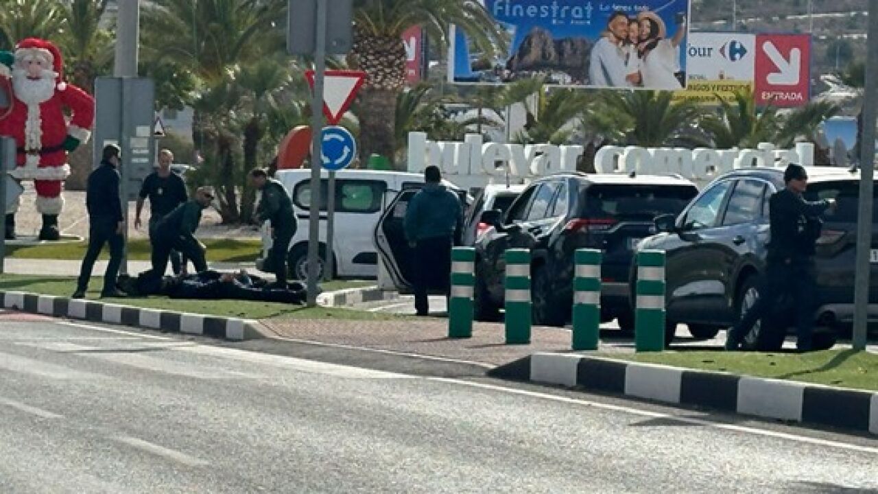 Agentes de policía de aduanas protagonizaron ayer en la rotonda de acceso al complejo del centro comercial de Finestrat, un episodio que parecía sacado de una película.