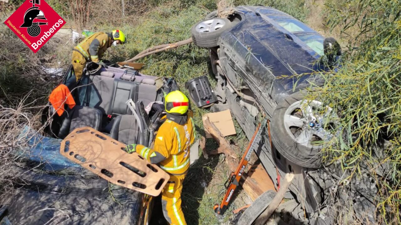 El suceso se producía ayer domingo a las 14:25 horas en el interior de la autopista a la altura de La Vial Joiosa cuando dos vehículos colisionaban entre ellos, dando varias vueltas de campana y caían en el interior de un terraplén, junto a la cuneta de dicha carretera.