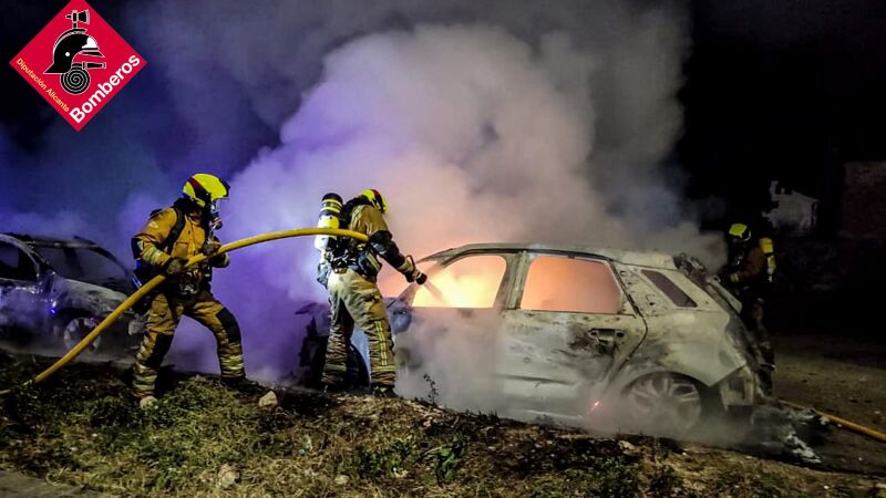 En la madrugada de hoy, domingo, sobre las 2:25 horas, los Bomberos de la Diputación con base en el Parque de Benidorm eran alertados de que se había declarado un incendio en el interior de una parcela que se utilizaba como lugar de estacionamiento habitual de los vehículos de los vecinos que residían en las calles Diputada Ángela Llinares y adyacentes. Hasta el lugar del suceso se desplazaba una dotación de bomberos compuesta por un vehículo de jefatura acompañado de una autobomba urbana pesada y un total de cuatro bomberos. un cabo y un sargento, que eran guiados por la policía local para alcanzar de forma precisa y en el menor tiempo posible, por la mejor ruta, el lugar del suceso.