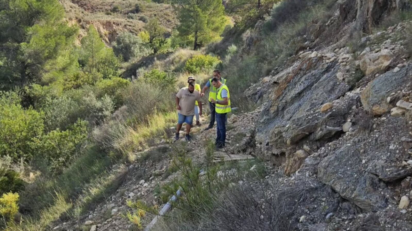 Representantes del Ayuntamiento de Orxeta acompañaron recientemente a los técnicos de la Conselleria y de Tragsa, encargados de la redacción del proyecto de la futura balsa de reguera del municipio. Los expertos han comenzado los estudios topográficos para determinar la ubicación de los azudes y las posibles canalizaciones donde se construirá el embalse.