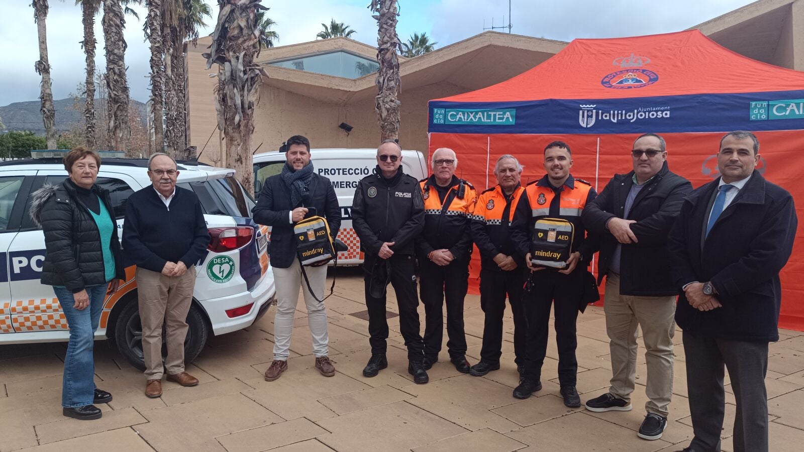 Los desfibriladores externos automáticos (DEA) son dispositivos portátiles livianos que permiten actuar en caso de paro cardiaco. Los dos coches de Protección Civil cuentan con una pegatina identificativa como “vehículo con desfibrilador”. Además, con la incorporación de este tipo de material técnico se amplía también la formación a los miembros de esta entidad.