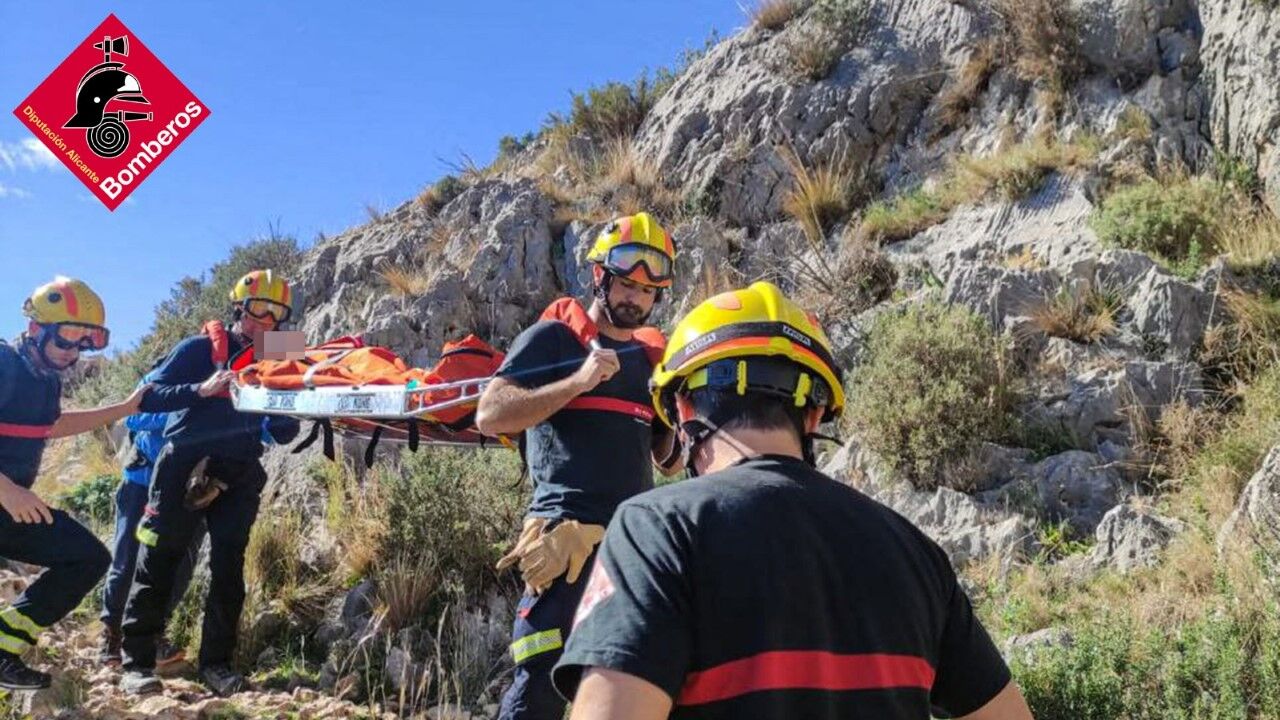 Efectivos del Consorcio Provincial de Bomberos rescataron, ayer domingo, a una senderista herida en la Sierra de Bernia.
