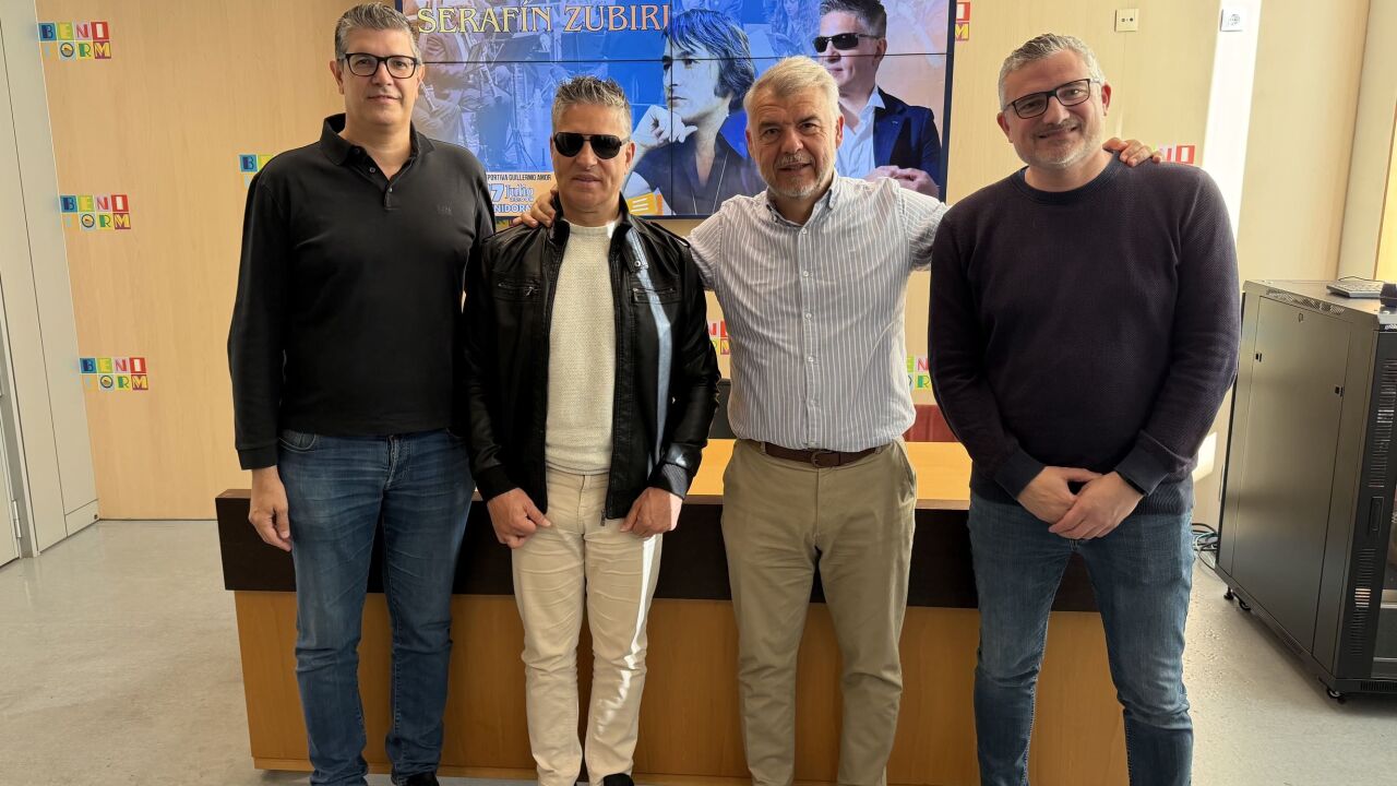 El acto ha contado con la presencia del concejal de Eventos, Jesús Carrobles; el CEO del recinto Skyfest Benidorm, Alexandre Fratini; el director de la Sociedad Musical L'Illa de Benidorm, Oswaldo Olmos; y el propio cantante Serafín Zubiri, protagonista del espectáculo, acompañado por Tony Gil, representante y promotor del evento.