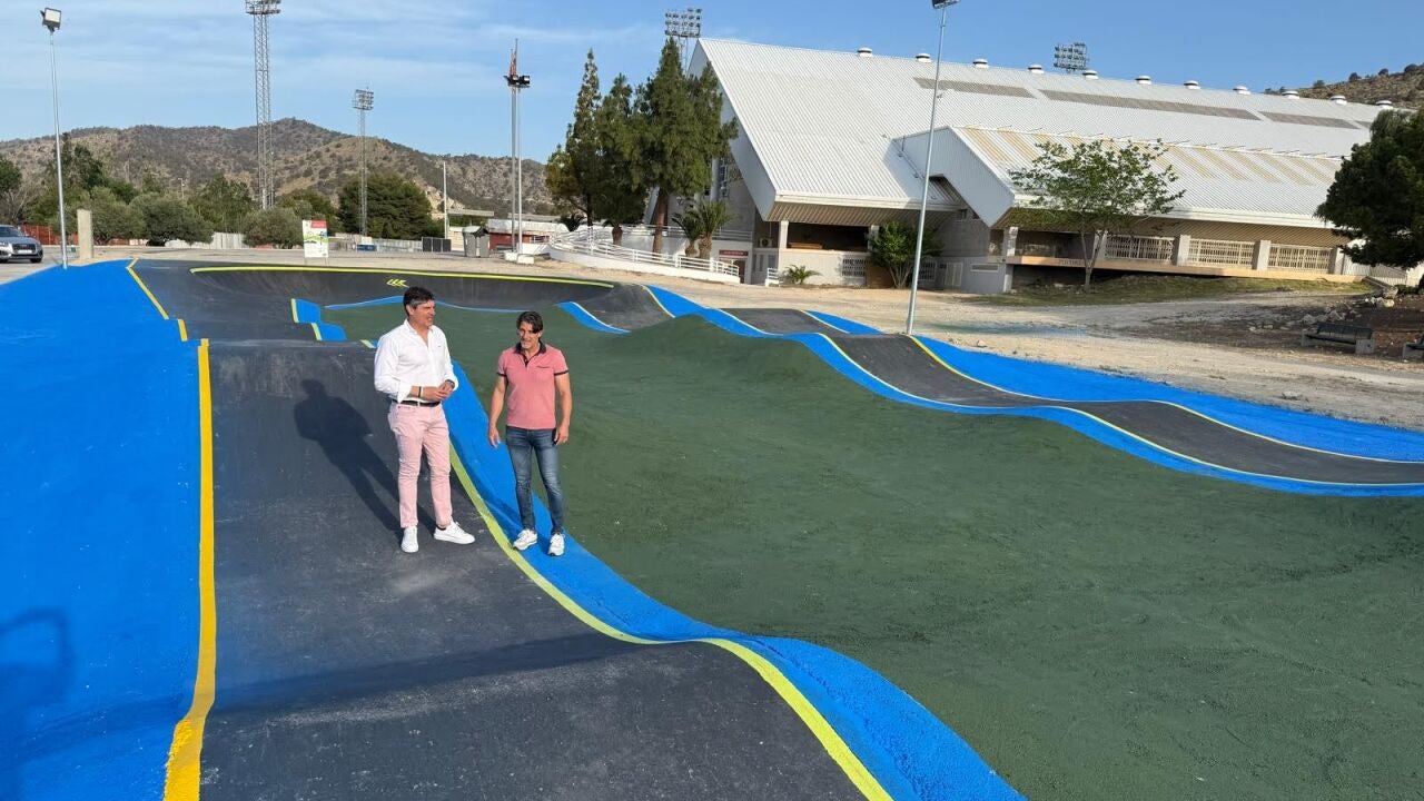 Villajoyosa ya disfruta de su circuito de 'pump track' totalmente renovado en el polideportivo Maisa Lloret. El alcalde, Marcos Zaragoza, y el concejal de Deportes, Peyo Lloret, han visitado la instalación para comprobar el resultado de las obras de mejora y adaptación.