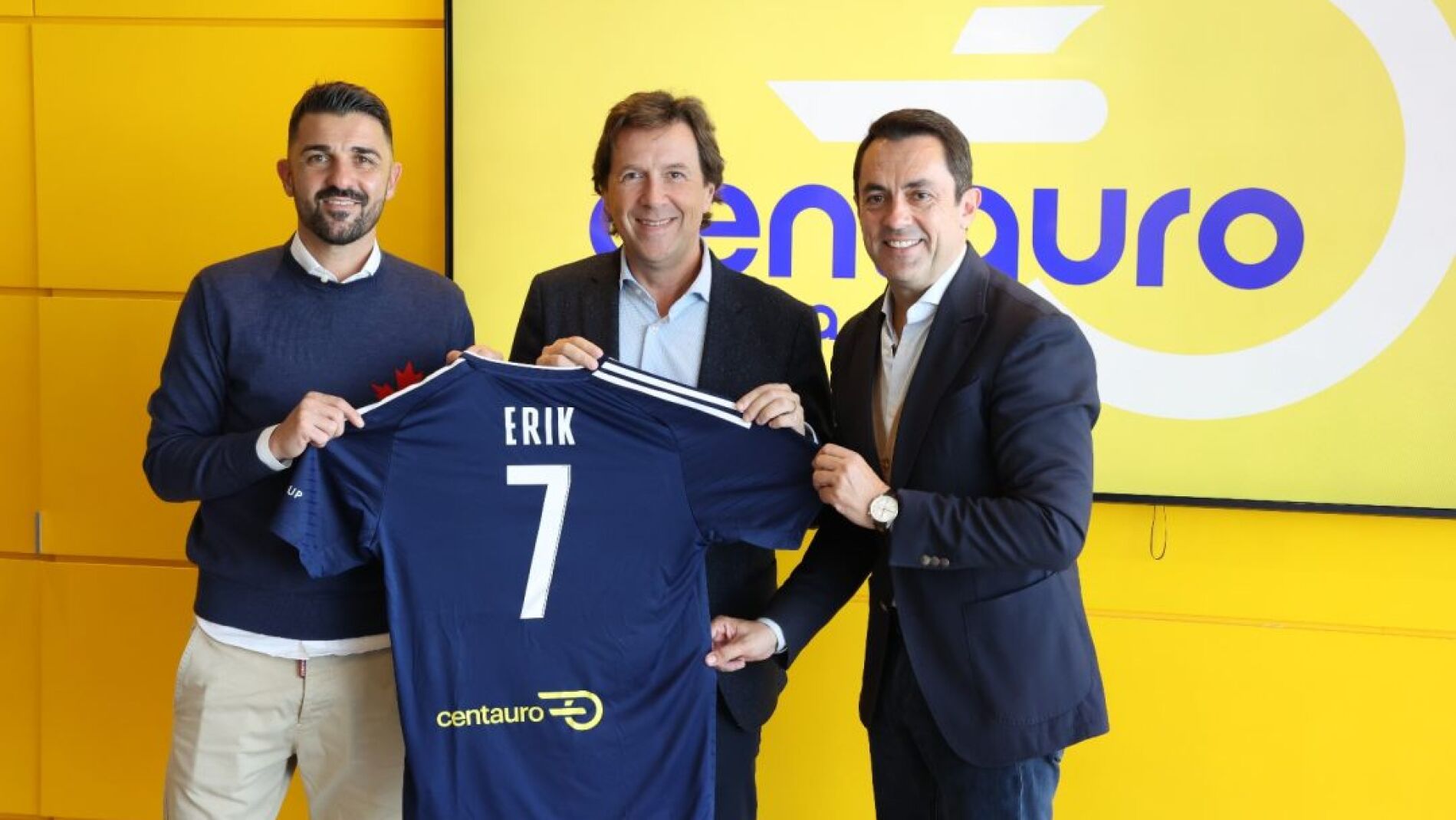 David Villa, El "Guaje", que en su día regaló a la afición el campeonato del Mundo para España y la Champions League, visitó ayer en su calidad de CEO de la empresa DV7 la sede central de la empresa de alquiler de vehículos Centauro Rent a Car, que es el patrocinador del Club propiedad de DV7, el Benidorm C.F., en la presente temporada 2023-24