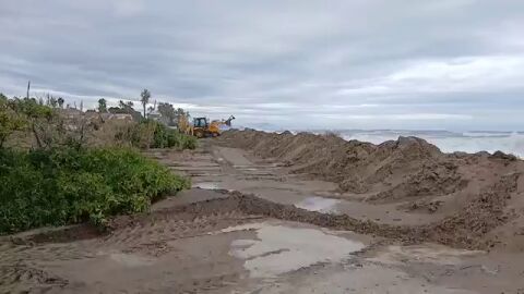 Desde el consistorio informan sobre la construcción de un pequeño dique en la playa para frenar la entrada de agua, medida que - dicen - ya ha surtido efecto. Además, por seguridad, el paseo del Pantalán permanece cerrado debido al fuerte oleaje registrado durante la jornada.
