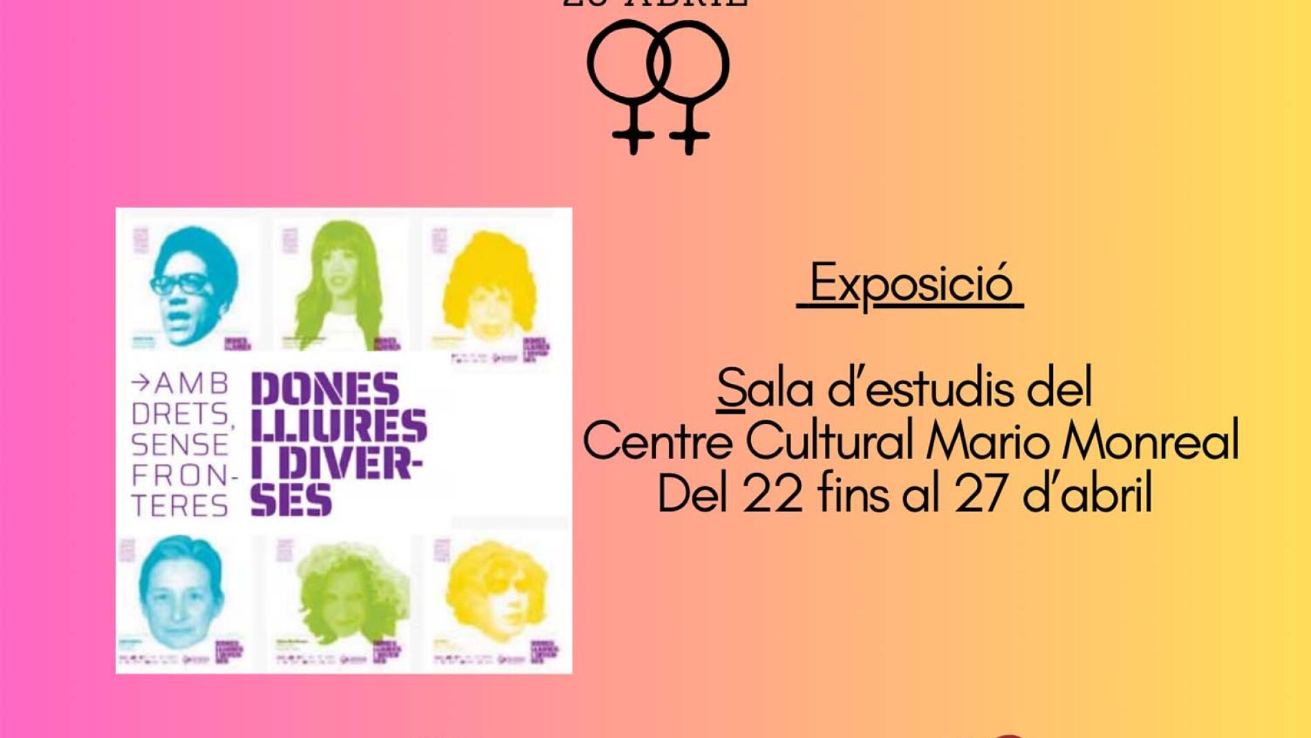 El Día de la Visibilidad Lésbica se celebra el 26 de abril, con el objetivo de visibilizar el papel que ocupan las mujeres lesbianas en el espacio público. Para conmemorar esta efeméride, la concejalía de Políticas LGTBIQ+ presenta la exposición : “Dones lliures i diverses sense fronteres”