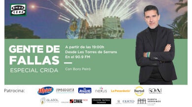 El domingo 26 de febrero a partir de las 19:00h, el programa Gente de Fallas se emite en directo desde les Torres de Serrans para contar en directo la Crida, el acto que enciende la mecha de las fallas 2023