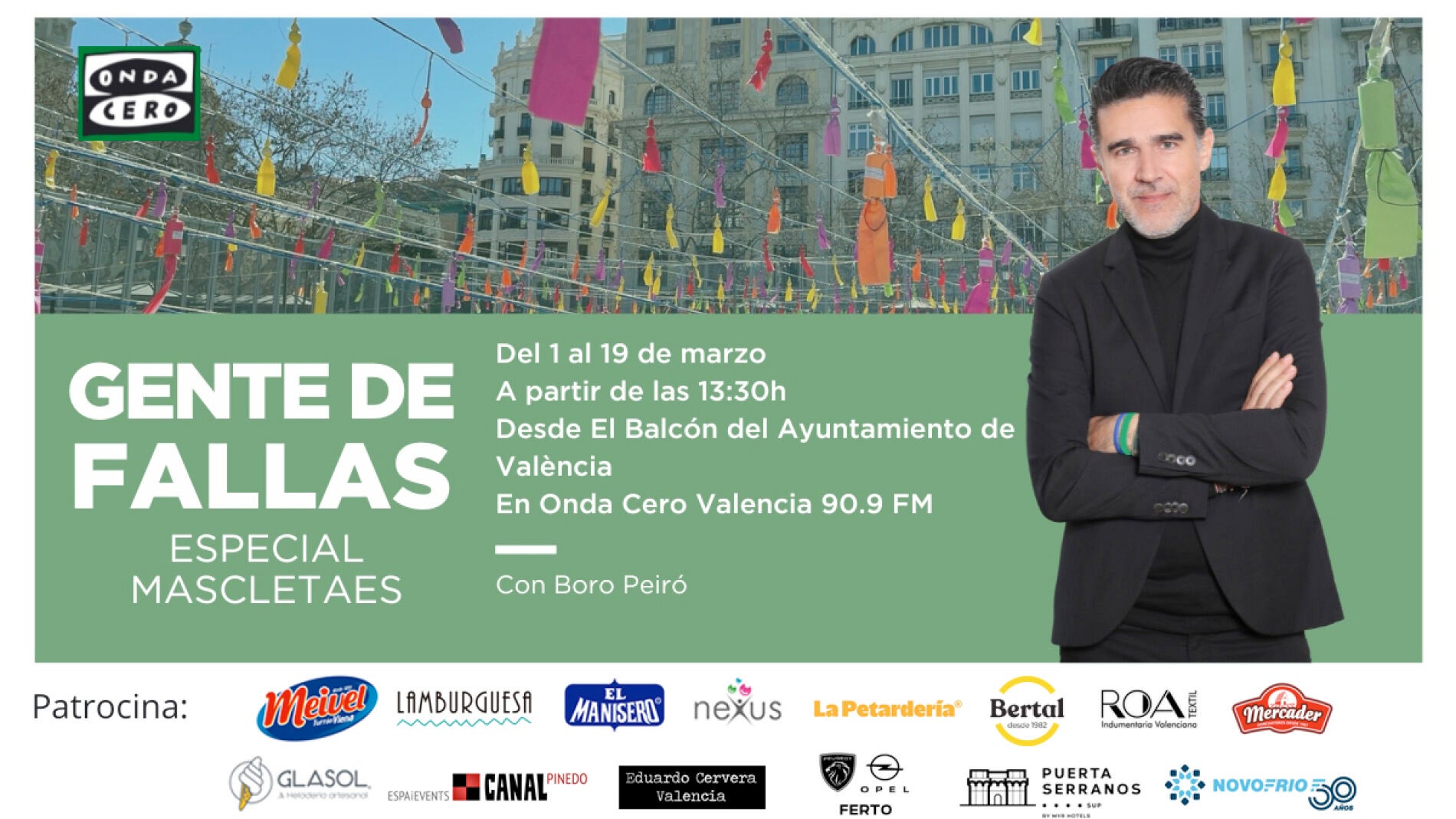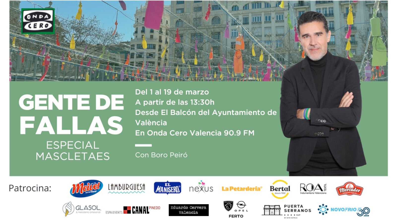 Del 1 al 19 de marzo la mascletà en directo a partir de las 13:30 en Onda Cero Valencia 90.9 FM desde el balcón del Ayuntamiento de València.