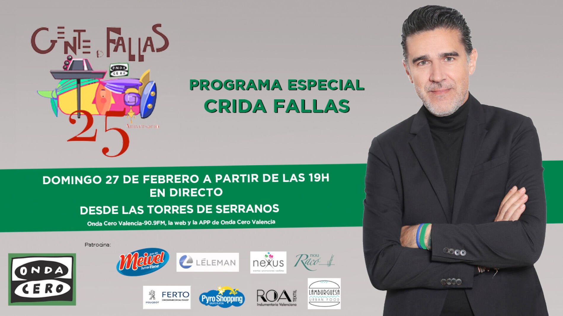 El próximo domingo 27 de febrero a partir de las 19:00h, el programa Gente de Fallas se emite en directo desde las Torres de Serranos para contar en directo la Crida, el acto que enciende la mecha de las fallas 2022