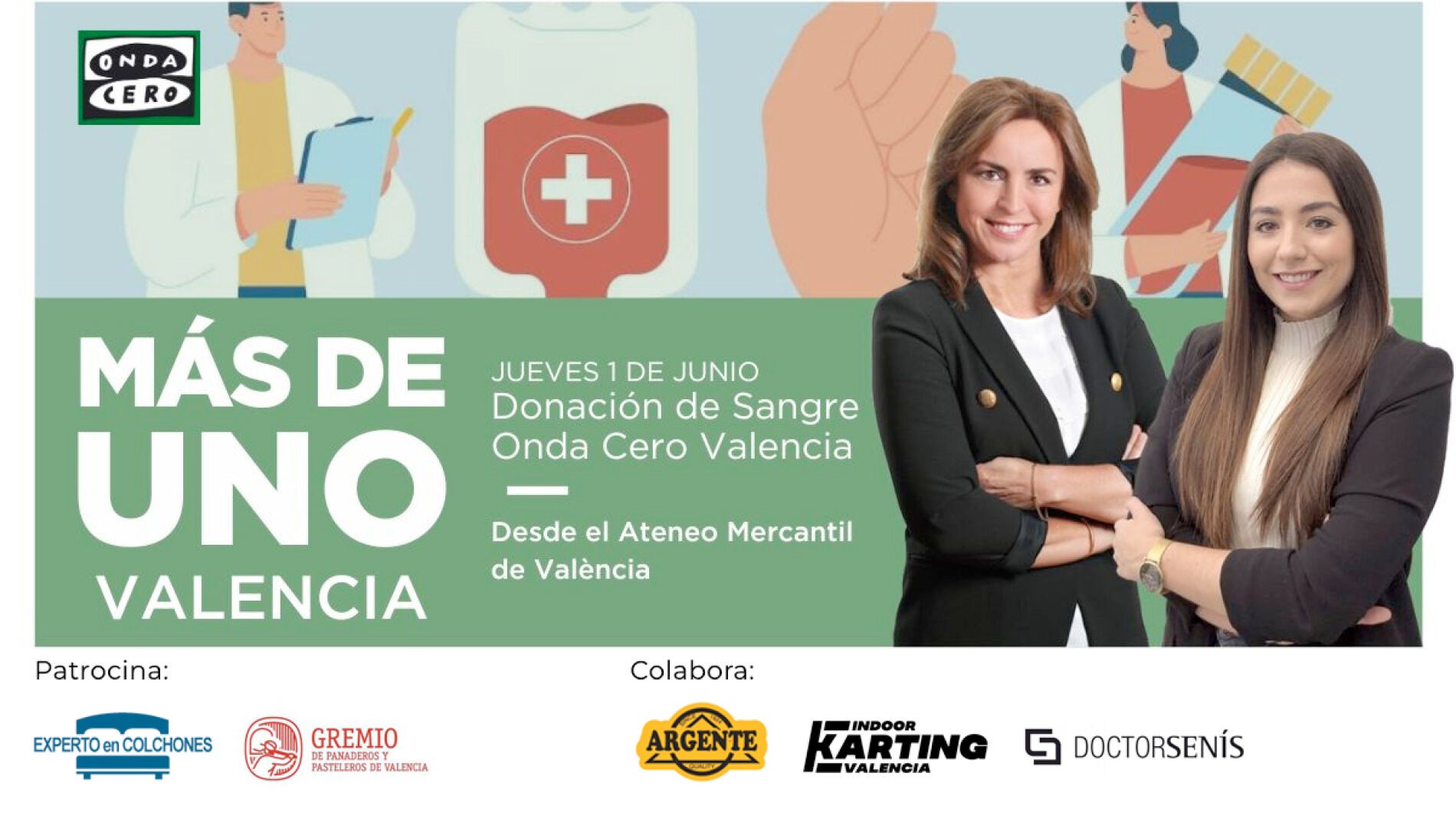 Onda Cero y el centro de transfusiones de la comunidad valenciana te animan a participar en la donación de sangre el jueves 1 de junio en el Ateneo Mercantil de Valencia, de 9.30 a 14 y de 16 a 20.30 h.