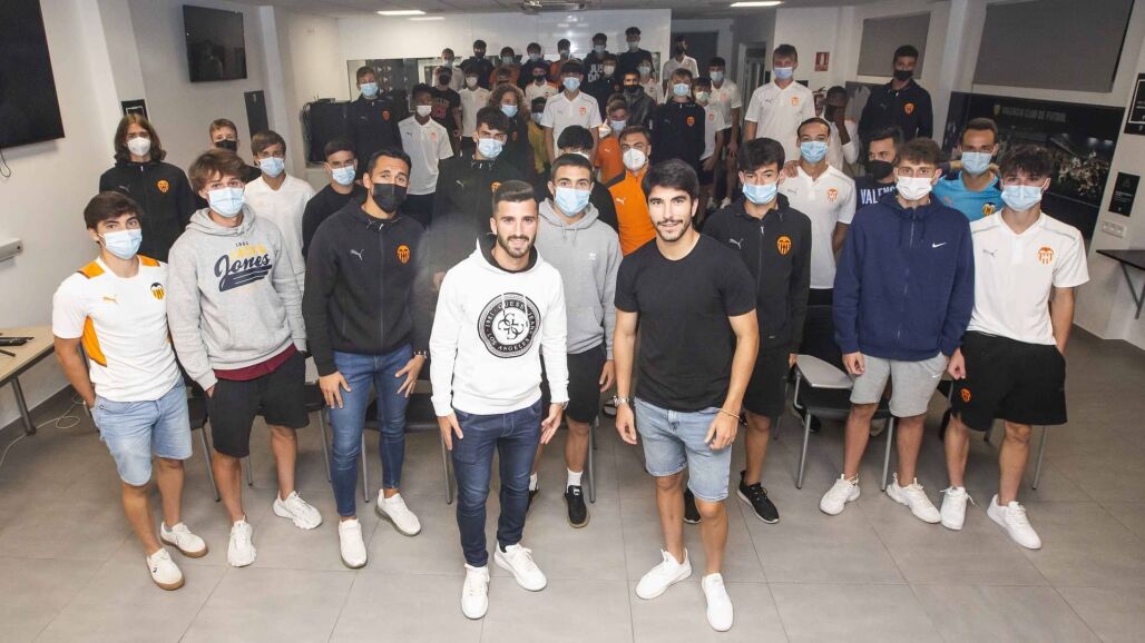 Carlos Soler, José Luís Gayá y el ex futbolista Voro González han compartido una charla con los jugadores de la residencia de la Ciudad Deportiva de Paterna. Organizado por el departamento Pisco Educativo de la Academia VCF se trataba de transmitirles los valores que les han hecho crecer y llegar hasta el primer equipo.