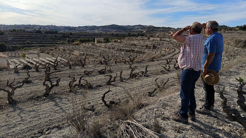 La organización agraria explica que la primera producción que ha sufrido los "estragos de la falta de precipitaciones son los cereales de invierno". "Muchos campos ni siquiera se van a recolectar porque los costes superan a los ingresos previstos por tan escasa cosecha comercializada", señalan. Los viticultores de secano, especialmente de las comarcas de Utiel-Requena, Los Serranos, la Vall d'Albaida y La Marina, prevén pérdidas cercanas al 90% de la próxima vendimia e, incluso, la muerte de las plantaciones más afectadas por el déficit hídrico. En esta época del año las viñas deberían mostrar brotes verdes de unos 80 centímetros de longitud. No obstante, muchas de las cepas no han brotado o tienen brotes de solo unos pocos centímetros que, o bien son devorados por los conejos, o están tan débiles que no producirán uvas.