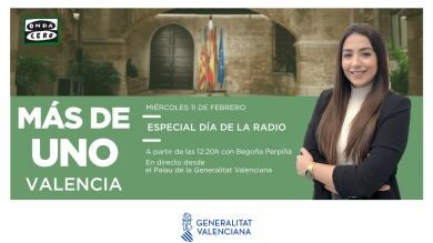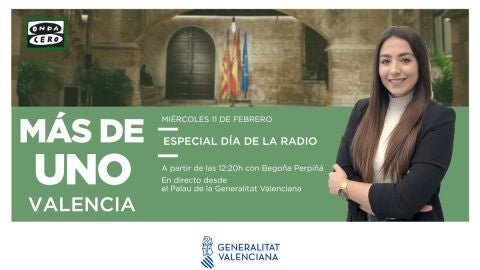 El miércoles 11 de febrero, a partir de las 12:20h, programa especial Más de uno Valencia con motivo del día mundial de la radio en directo desde el Palau de la Generalitat Valenciana.