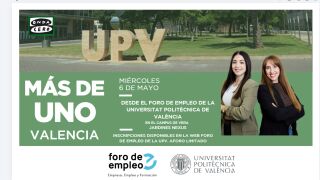 La edición de 2026 se celebrará los días 6 y 7 de mayo en el campus de Vera (Valencia), en horario de 10:00 a 18:00 horas. (foroempleo.webs.upv.es)