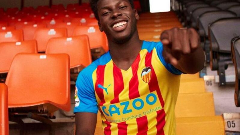 Presentadas la primera y segunda equipación que lucirá el Valencia en esta temporada 2022-2023, faltaba por conocer la tercera de la que se sabía ya que iba a ser la Senyera. Ahora ha sido filtrada a través de twitter en una fotografía en la que aparece Yunus Musah como modelo de esa tercera camiseta.
