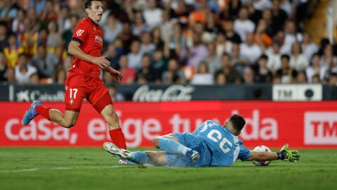 El portero georgiano Giorgi Mamardashvili se convirtió este martes en el portero más joven en llegar a los cien partidos en Primera con el club de Mestalla, al hacerlo con 23 años y 360 días.