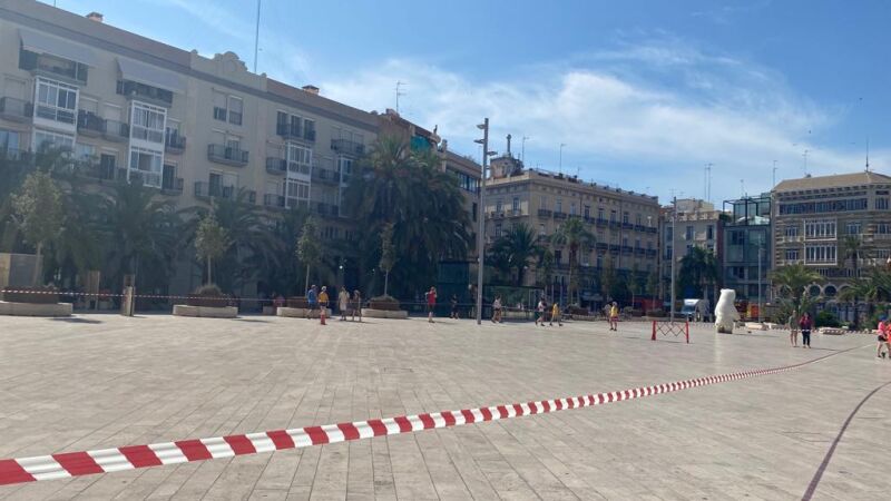 Este lunes ha arrancado por fin el montaje de los toldos previstos para dar sombra en la plaza de la Reina. Junto a los pulverizadores de agua, que ya se pusieron en funcionamiento hace unos días, son los elementos incluidos en la reforma de la plaza para ayudar a combatir las altas temperaturas durante los meses de más calos.