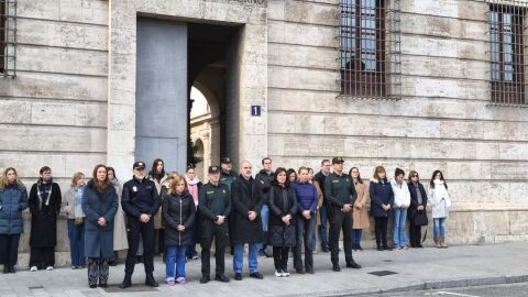 En València, a las puertas del Palau dels Borja, sede de Les Corts Valencianes, la convocatoria ha contado con la participación de representantes de todos los grupos parlamentarios --PP, PSPV, Compromís y Vox-- y ha estado presidida por la presidenta del parlamento valenciano, Llanos Massó.