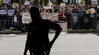 La concentración se ha desarrollado detrás de las vallas de seguridad que se habían colocado previamente alrededor del perímetro del edificio del Rectorado de la universidad, donde se desarrolla la ceremonia.
