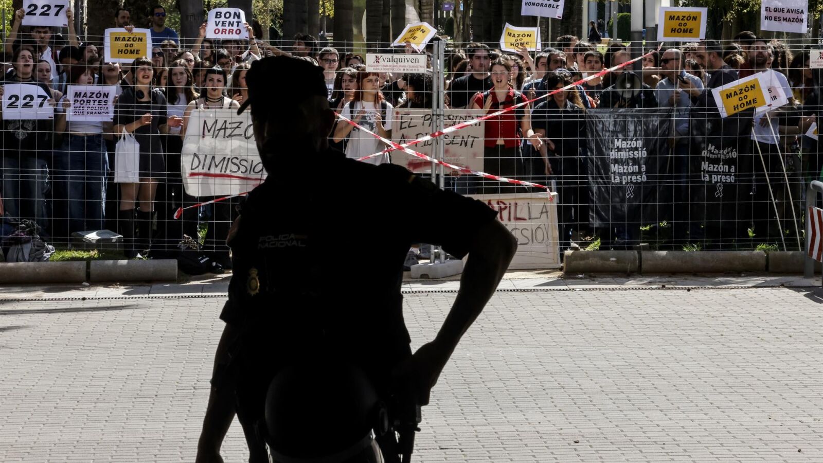 Varias decenas de estudiantes han recibido al jefe del Consell con gritos de 'Vergüenza', 'Mazón dimisión' o 'El president a Picassent'. También han mostrado pancartas con lemas como 'Mazón go home', 'Mazón a la presó' o 'Mazón: 228 razones para dimitir'. Igualmente se ha visto algún cartel contra el rector Capilla.