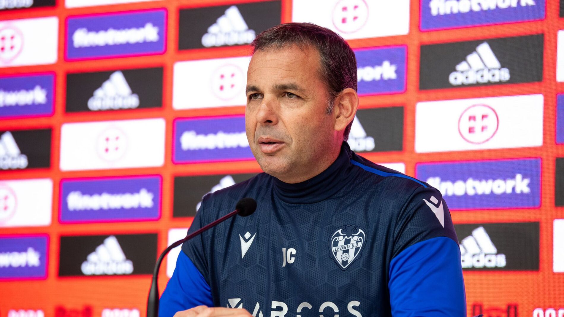 Comparecencia de Javi Calleja, entrenador del Levante UD, en la previa del partido que les enfrentará al Andorra este sábado a las 18:30 en el Ciutat de Valencia y con la posibilidad de alcanzar el liderato de la segunda división del futbol español.