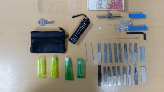 Estaban manipulando la puerta de un edificio del distrito de Tránsitos cuando fueron sorprendidos, y tiraron al suelo un monedero con herramientas para cometer robos con fuerza, entre ellas, 17 llaves "bumping".