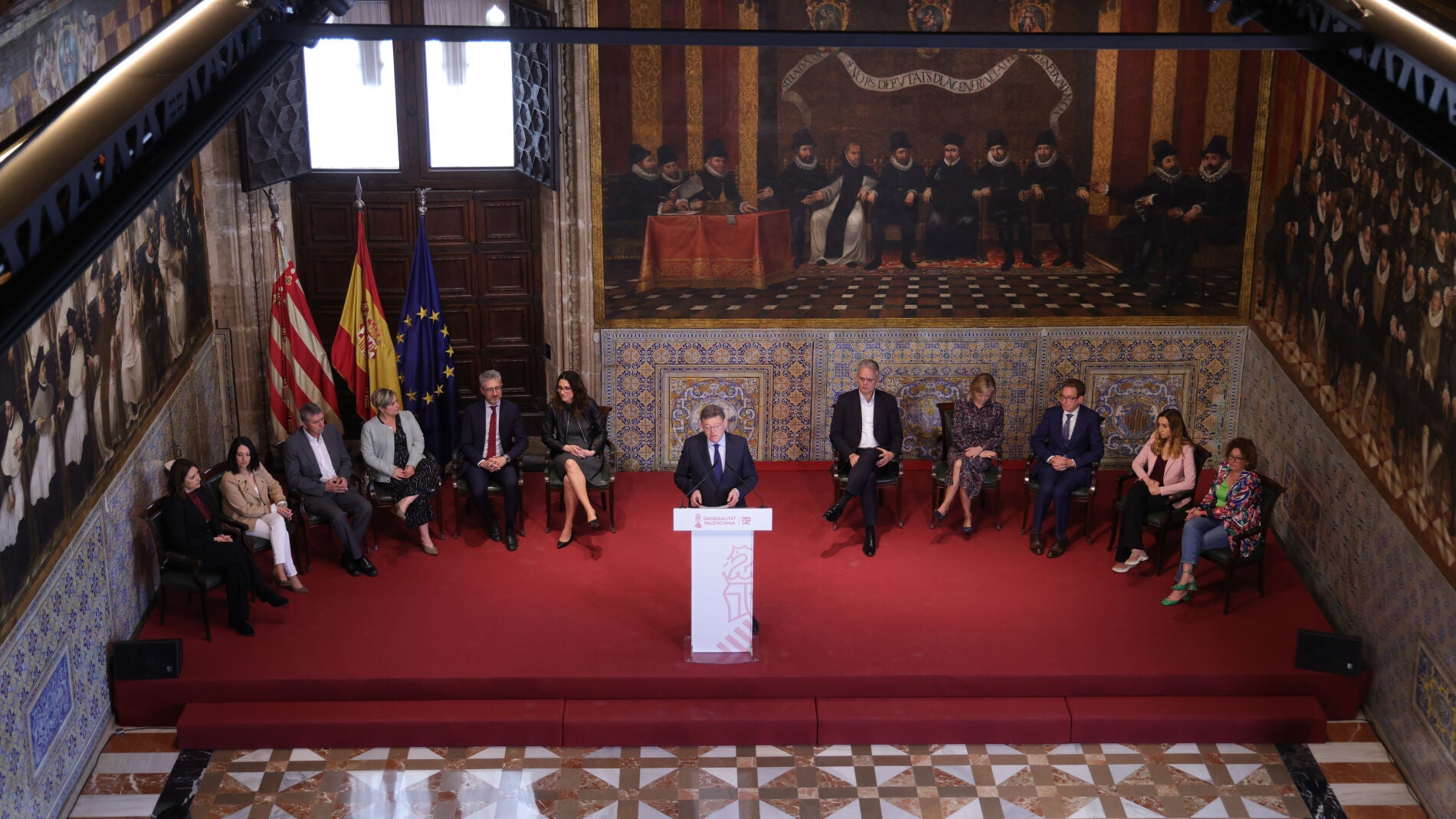 Todos los consellers han arropado al 'president' en su anuncio, una imagen que contrasta con la última convocatoria electoral, cuando compareció en solitario, al estar en contra del adelanto los miembros de Compromís. Este lunes incluso ha habido foto de familia.