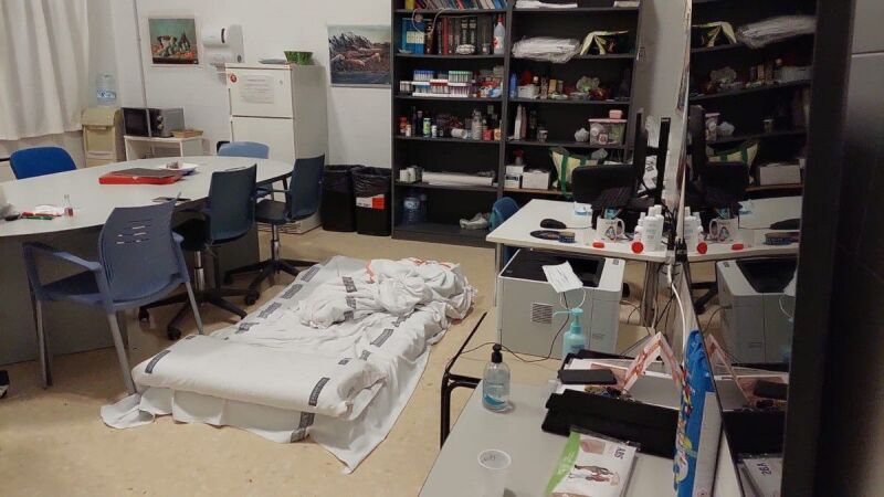 En algunos centros se ha detectado que las camas destinadas a descanso estaban ubicadas en salas de consulta, en laboratorios o en algún mostrador. En muchos casos junto a instrumental y material sanitario o el propio mobiliario de las salas.
