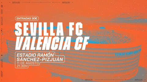 El Valencia ya ha puesto a la venta las entradas de grada visitante para el encuentro del el viernes 11 de agosto a las 21:30 horas en el Sánchez Pizjuan. Tal y como quedó reflejado en el pacto sellado con 15 clubes de primera división, el precio es de 30 euros y el club dispondrá de un mínimo de 300 localidades.
