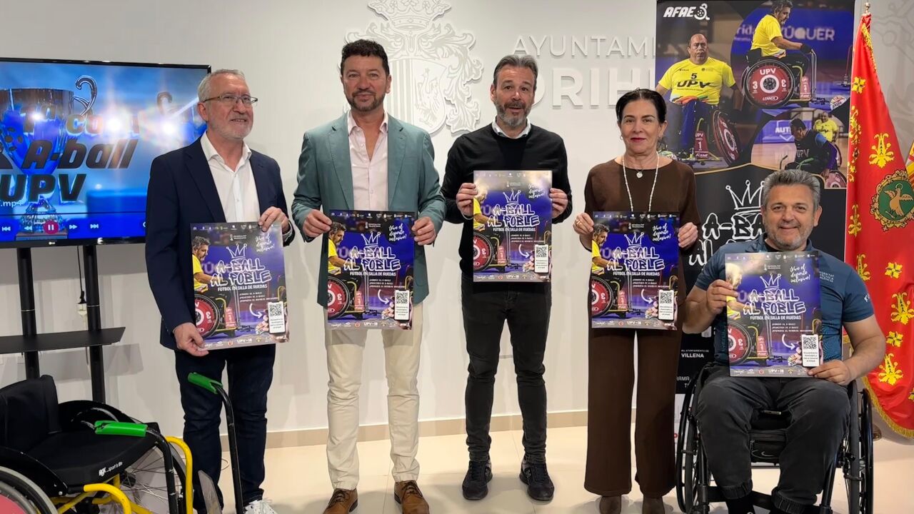 El Ayuntamiento de Orihuela ha presentado la jornada ‘A-Ball al Poble’, una iniciativa de deporte inclusivo que se celebrará el próximo martes 21 de abril, a las 10:00 horas, en el pabellón Bernardo Ruiz. En la rueda de prensa han participado el concejal de Deportes, Víctor Sigüenza, la concejal de Bienestar Social, Agustina Rodríguez, y el concejal de Educación, Vicente Pina, acompañados por el organizador del proyecto, Antonio Falcó y jugadores del club.
