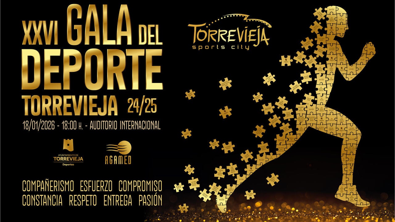 La ciudad de Torrevieja celebrará el domingo, 18 de enero, a las 18:00 horas, en el Auditorio Internacional, la “XXVI edición de la Gala del Deporte”, un evento que se ha consolidado como el gran homenaje anual al esfuerzo, la constancia y los logros de nuestros deportistas. En esta edición se reconocerán los méritos deportivos de la temporada 2025, con un total de 116 deportistas nominados, 13 equipos, además de 2 menciones honoríficas y 3 menciones especiales.