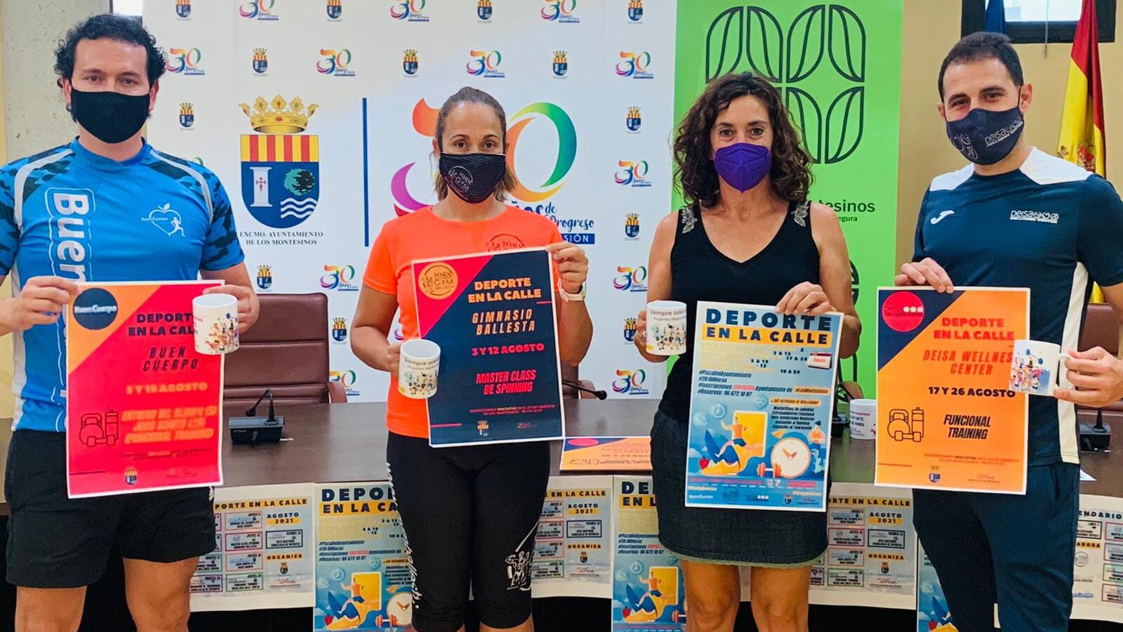 La concejala de Deportes del Ayuntamiento de Los Montesinos, Ana Belén Juárez, ha presentado la iniciativa ‘Deporte en la Calle’ “que acercará la actividad física y deportiva durante el mes de agosto a todo el mundo en un afán por impulsar la vida saludable y apoyar a los gimnasios de la localidad, a quienes la pandemia ha afectado de forma importante”, ha dicho la concejala, quien ha informado que durante los martes y jueves del mes de agosto a las 20h y en la Plaza del Ayuntamiento tres centros deportivos de la localidad y la propia Concejalía de Deportes ofrecerán clases gratuitas aptas para todo el mundo y que después de cada una de ellas se ofrecerá un avituallamiento saludable.