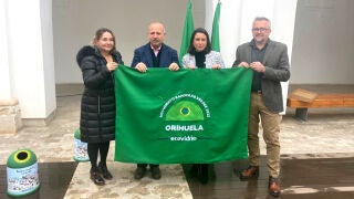 Orihuela ha recibido hoy la Bandera Verde de Ecovidrio, con la que se premia el activismo del municipio en relación a la recogida selectiva del vidrio y la sostenibilidad del sector hostelero en época estival, puesto que es cuando se produce la mayor circulación de envases de este material. La alcaldesa, Carolina Gracia, ha sido la encargada de recoger el galardón de manos de la directora territorial en Alicante de la Conselleria de Agricultura, Desarrollo Rural, Emergencia Climática y Transición Ecológica, Carmen Catalá, y con la presencia del concejal de Residuos Sólidos Urbanos y Limpieza Viaria, Guillermo Cánovas, y el gerente de zona de Ecovidrio, Roberto Fuentes. Así, Carolina Gracia ha recordado que “la recogida de vidrio se lleva impulsando desde hace muchos años en Orihuela” y ha subrayado la necesidad de “recuperar el vidrio, sobre todo en época estival”. “Siempre es un honor recibir premios, sobre todo si es la Bandera Verde”, ha considerado la alcaldesa, quien ha reconocido el esfuerzo de los servicios municipales y del sector hostelero del municipio para concienciar y trabajar en el reciclado del vidrio. “Este premio nos motiva para seguir separando residuos, hacer las ciudades más sostenibles y mantenernos en la lucha contra el cambio climático”, ha apuntado.