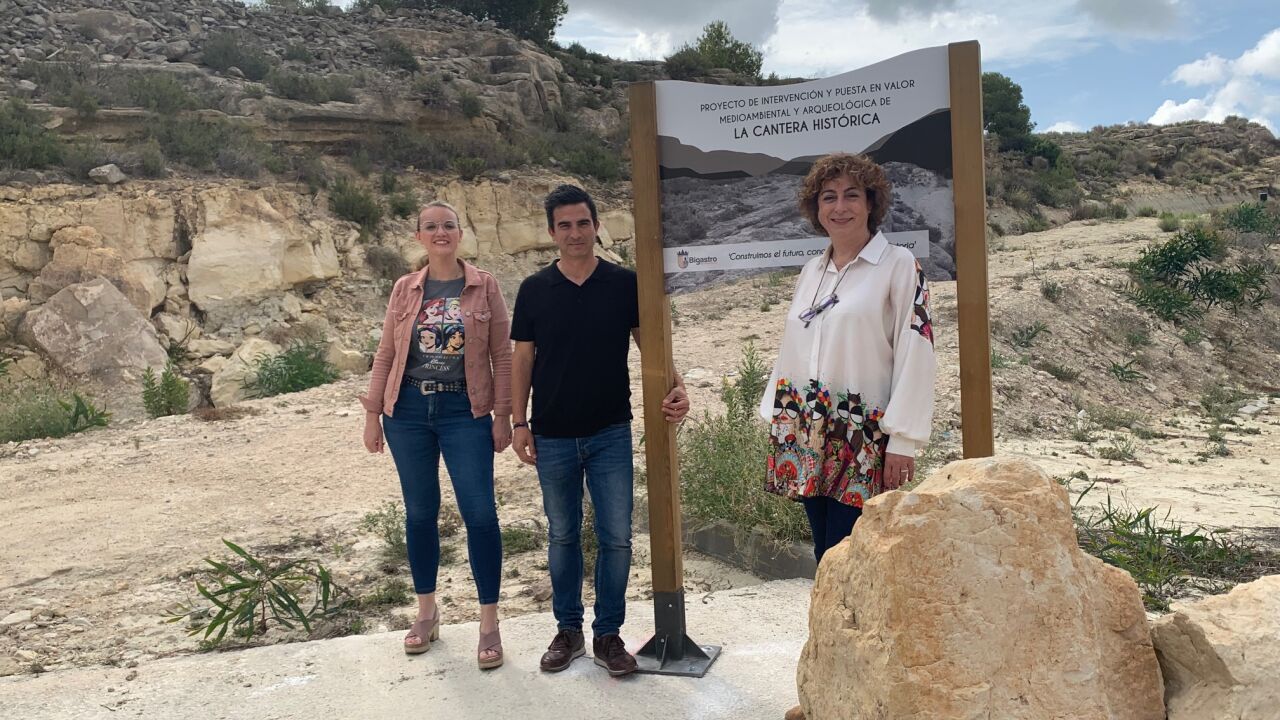 La alcaldesa de Bigastro, Teresa Belmonte, el edil de Urbanismo, Antonio Meseguer, y la concejal de Cultura, Alejandra Moya, han visitado el paraje de La Pedrera para presentar el inicio del Proyecto de Intervención y Puesta en Valor Medioambiental y Arqueológica ‘La Cantera Histórica‘.
