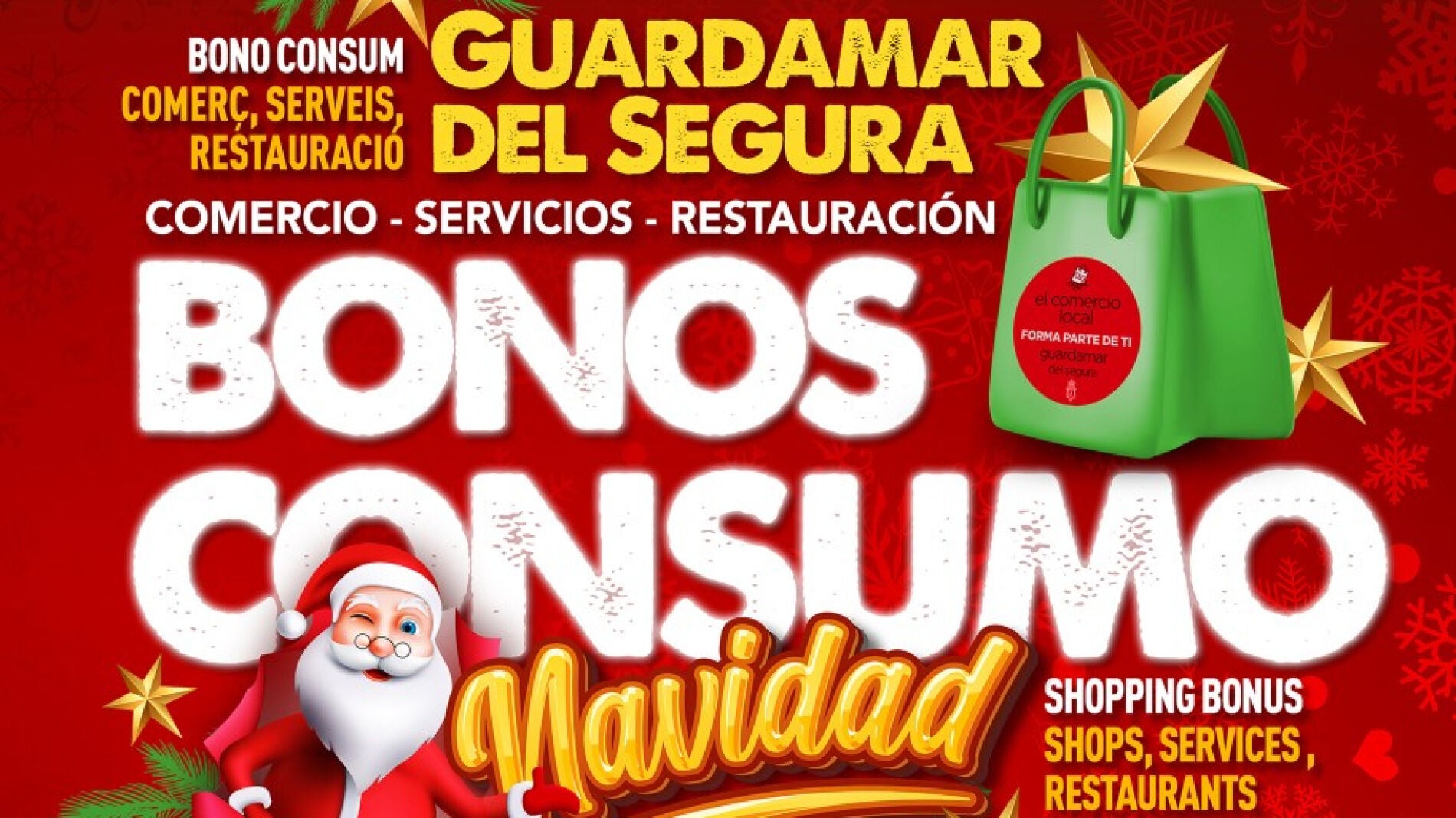 La Concejalía de Promoción Económica ha habilitado en la oficina de turismo la venta presencial de bonos durante los días 9,12,13 y 14 de diciembre en horario de 09:00 a 14:00 horas. Al mismo tiempo se abrirá la venta on line hasta agotar los bonos que podrán ser canjeados desde el 9 al 31 de diciembre en los establecimientos adheridos.