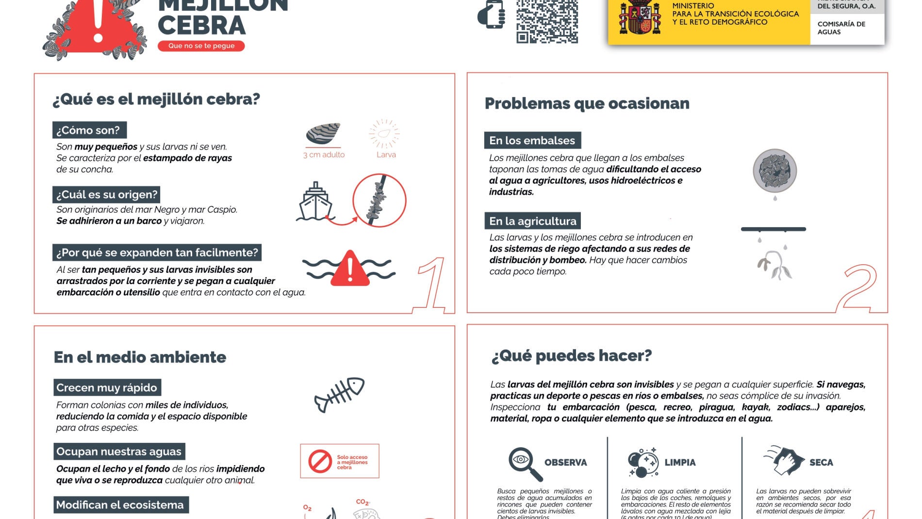 Además, la CHS ha publicado toda la información relativa al Plan de Choque contra el mejillón cebra y los protocolos de limpieza para los usuarios en su página web: https://www.chsegura.es/export/sites/chs/descargas/cuenca/redesdecontrol/es