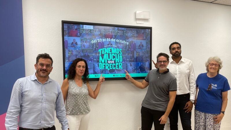 La concejal de Comercio, Hostelería y Turismo del Ayuntamiento de Torrevieja, Rosario Martínez; Jorge Almarcha, presidente de APYMECO; Elvira Geurts, representante de la Asociación para la Mejora de la Artesanía Comercial (AMATA); Amadú Sow, responsable de eventos DANRA, y Arturo Cerdá, representante de la empresa YAMUVE, han presentado el amplio programa de actividades que se van a llevar a cabo dentro del “Mes del Comercio Local”, que organiza el Ayuntamiento de Torrevieja y que se desarrollará del 10 hasta el 31 de octubre en diferentes puntos de la localidad.