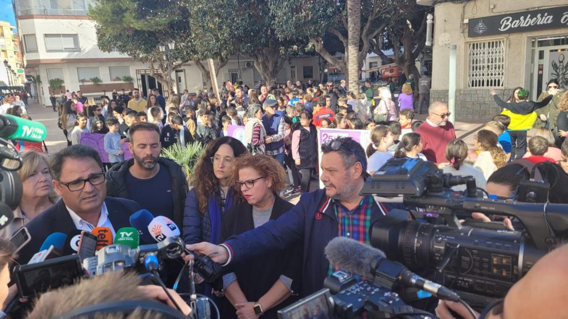 A la concentración también han asistido alumnos y profesores de los Colegios Públicos del municipio. Esta multitudinaria concentración, coincidiendo con el 25N, ha mostrado la repulsa de la sociedad a la violación grupal de una menor de 15 años ocurrida el pasado 10 de noviembre en un descampado cercano al polideportivo de Dolores.